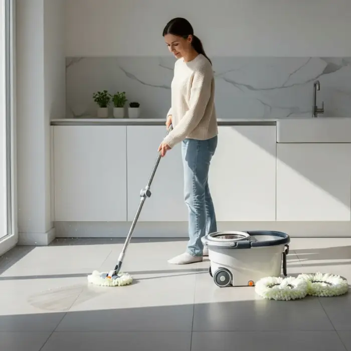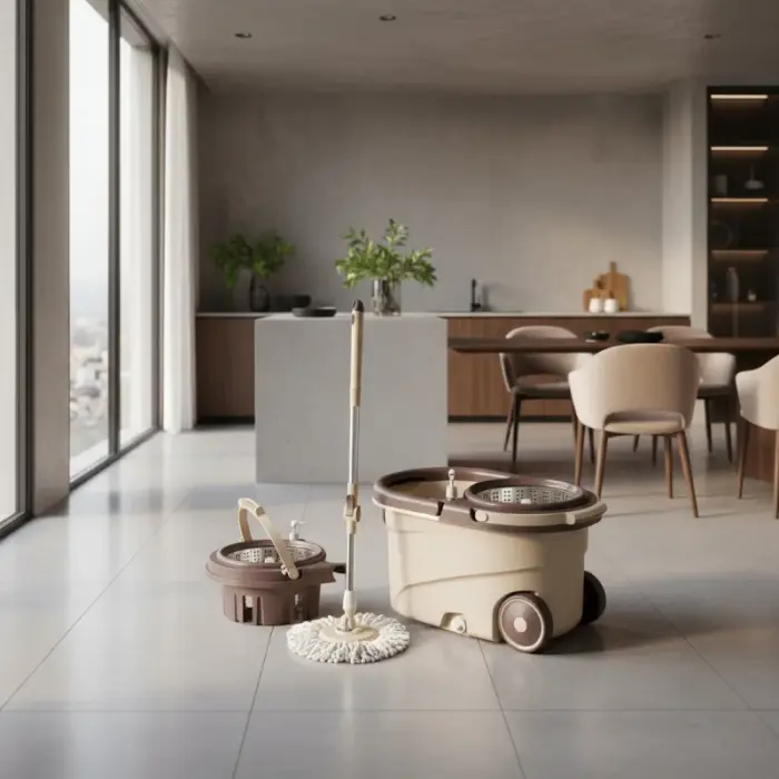 Balde trapeador centrifugo con cuba giratoria de acero inoxidable