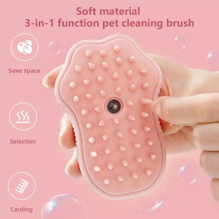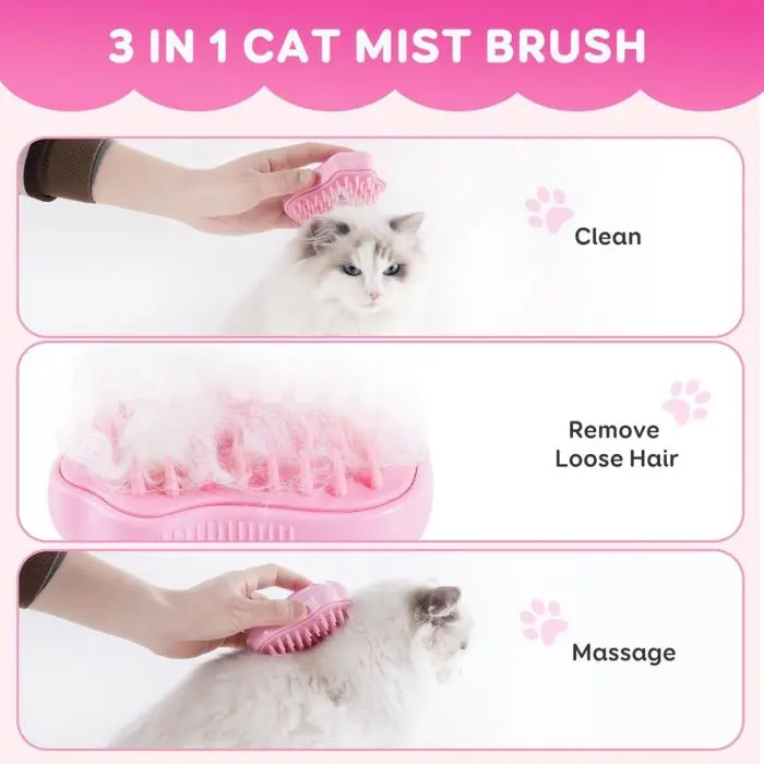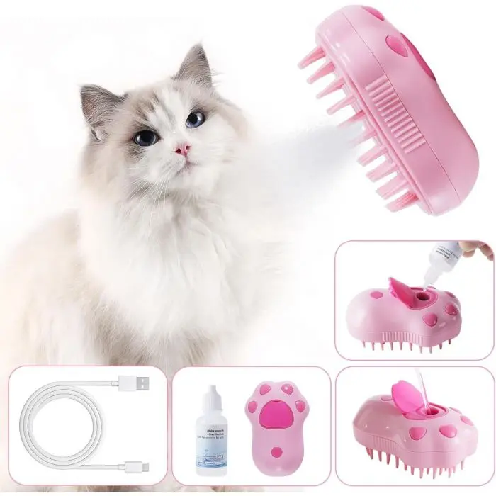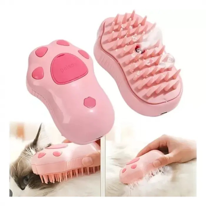 Este dispositivo 3 en 1 no solo cepilla, sino que también masajea y utiliza vapor para eliminar la suciedad y el pelo suelto, mejorando la salud del pelaje de tus mascotas.