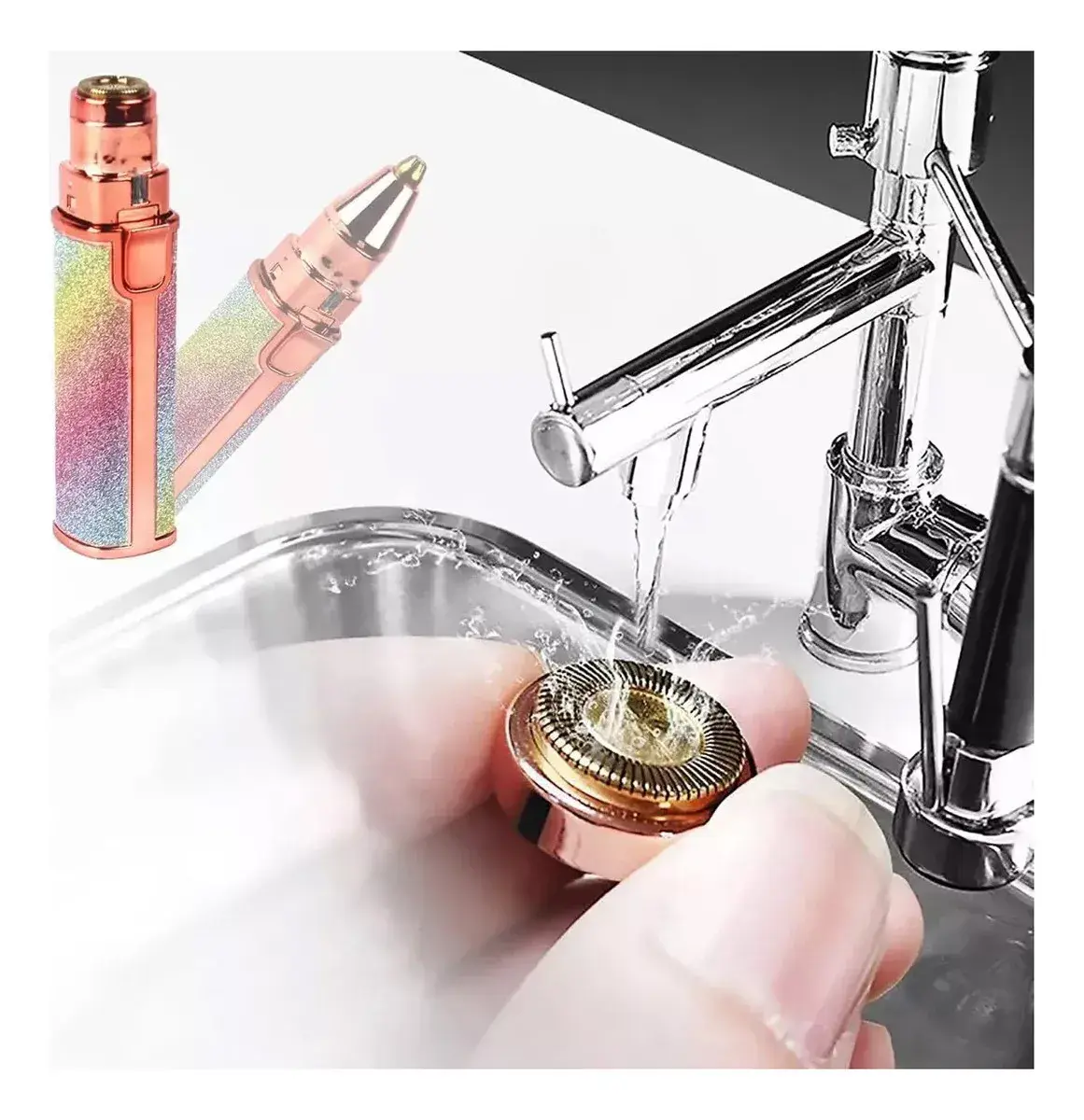 Elimina el vello facial y da forma a tus cejas de manera rápida, indolora y sin irritación. Su diseño portátil multicolor incluye dos cabezales intercambiables: uno para áreas grandes (rostro, brazos, piernas, axilas, bikini) y otro para zonas delicadas como cejas o labio superior.