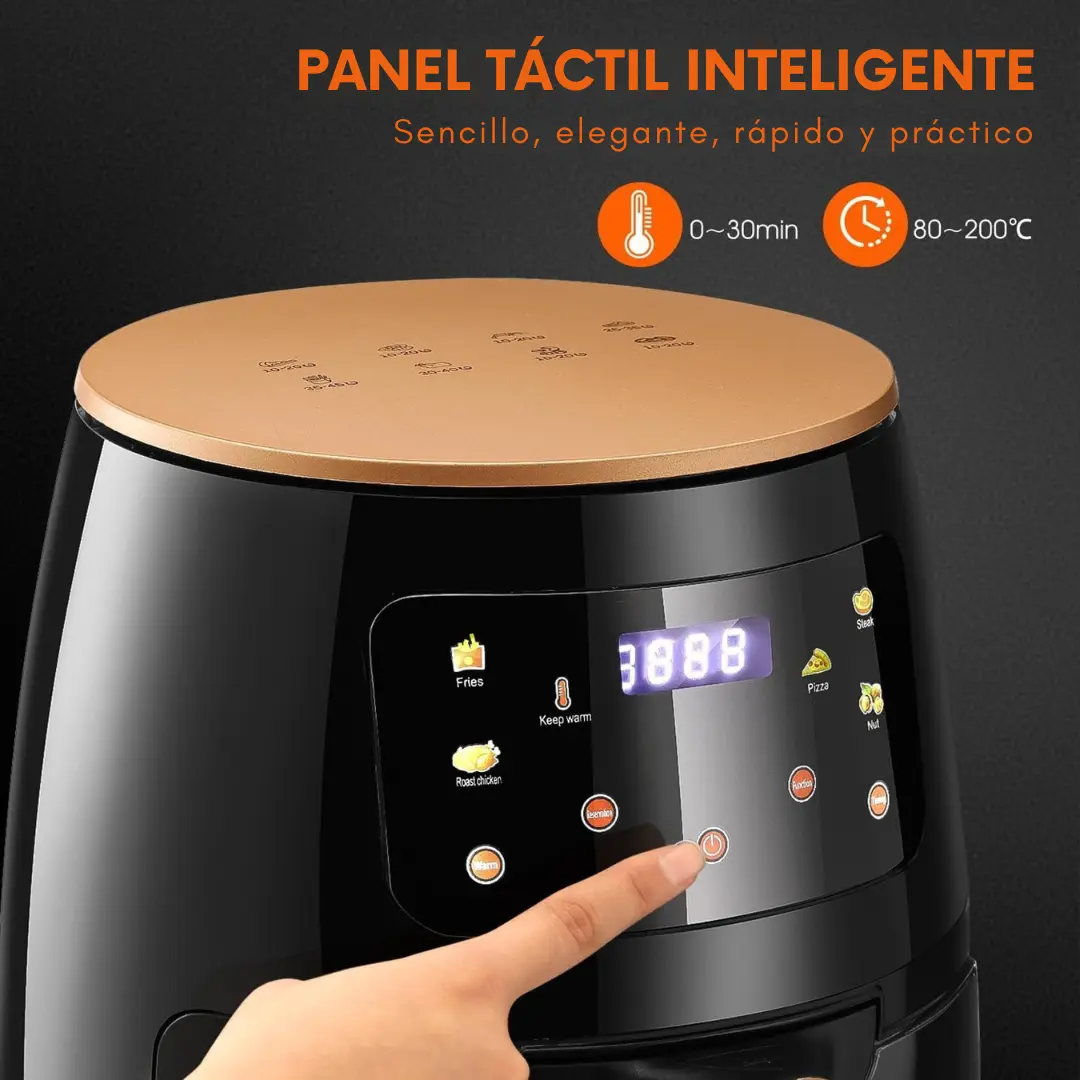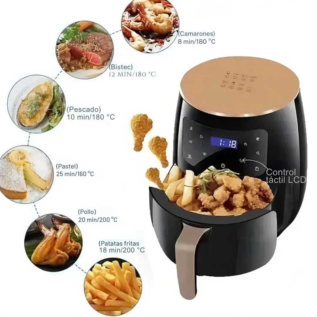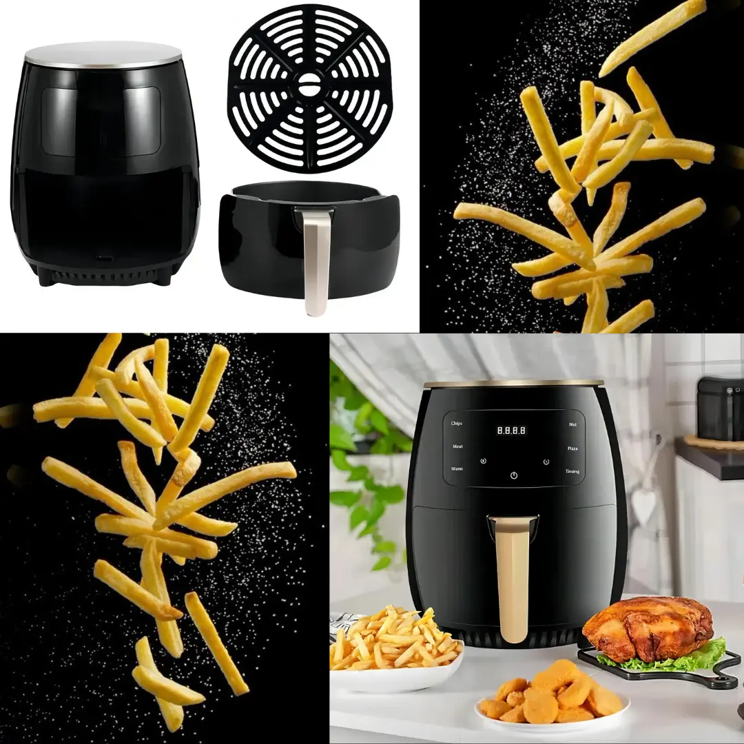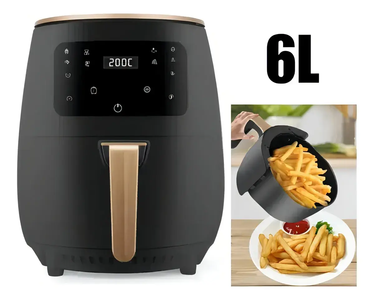 Descubrí una nueva forma de cocinar con la Freidora de Aire Premium 6L – 1400W, diseñada para quienes buscan elevar cada comida a una experiencia gourmet. Su amplia capacidad de 6 litros se adapta a familias modernas y amantes de la buena cocina, permitiéndote preparar platos completos sin esfuerzo ni espera.